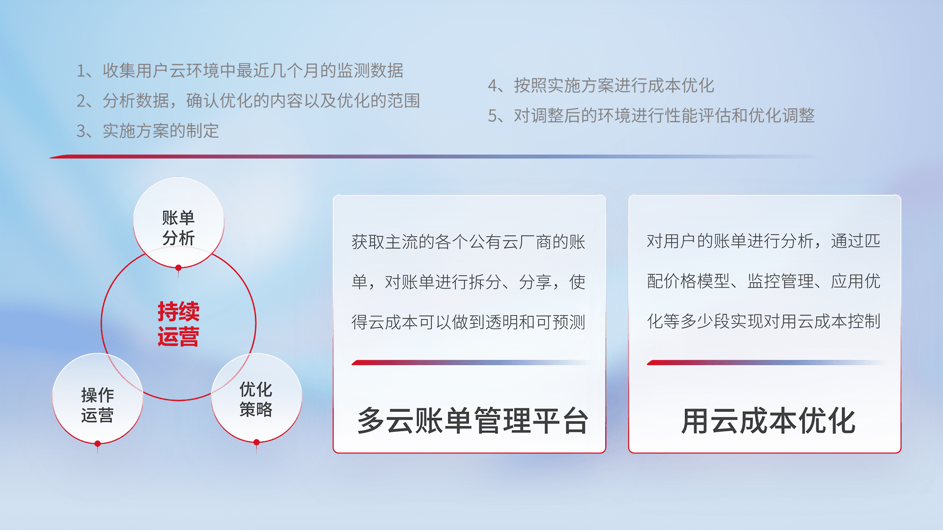 通过灵活运用多种自动化迁移工具,,,,帮助企业用户实现业务和数据高效 、、、稳定的上云迁移和云上迁移,,,采用自研多云纳管平台,,以中立管理模式,,,,解决多组织、、、、多云、、、、多运维厂商的复杂关系的管理,,保证多云平台资源配置的一致性,,实时掌控云资源运行数据,,,运用智能化工具分析云资源多云平台的管理服务,,,,透明化管理成本支出,,用云成本可预测、、、、用云费用可优化、、、云资源配额有据可依。。。。